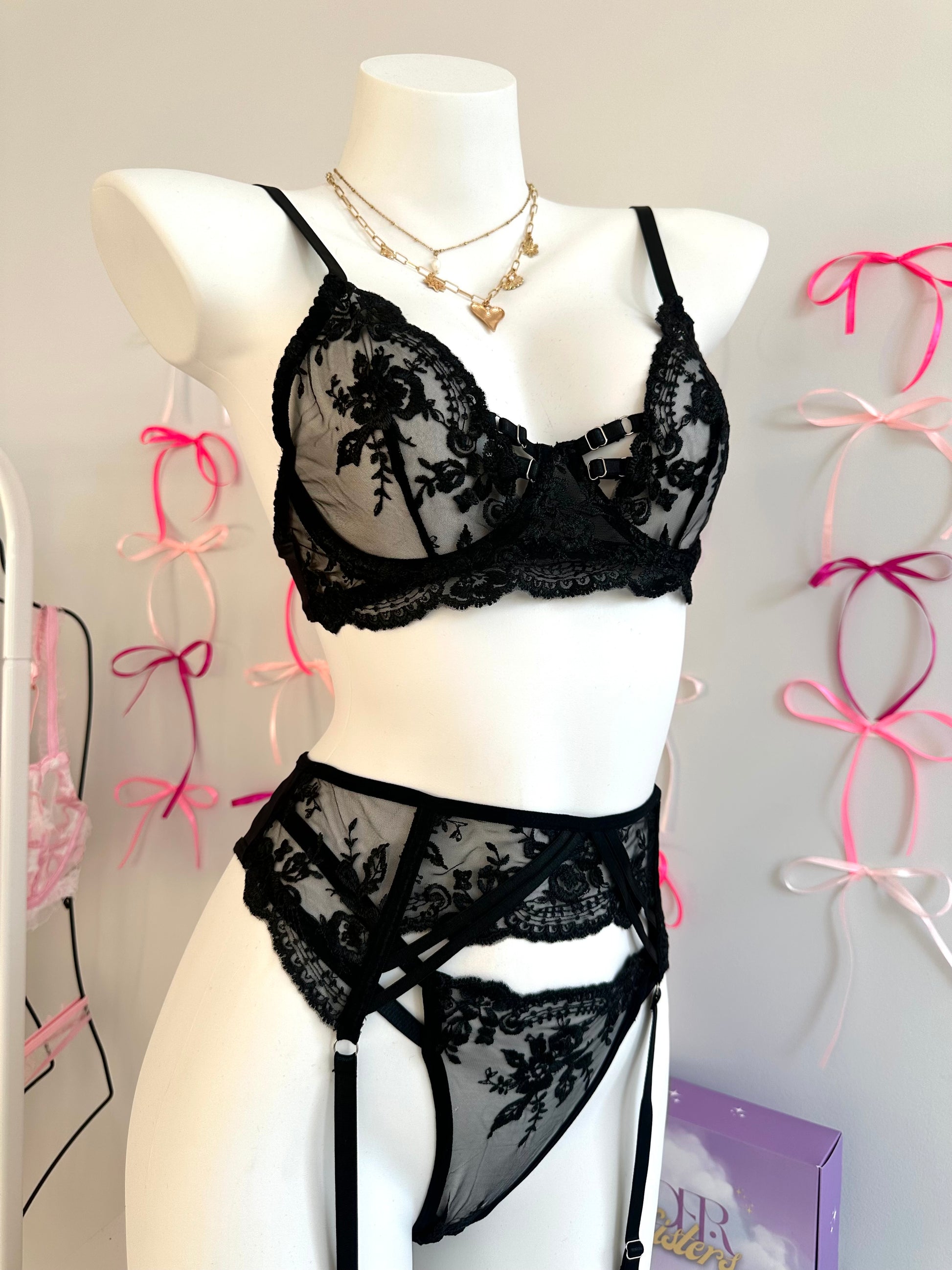 Zmysłowy stanik z ozdobnymi paseczkami subtelnie oplecie Twój biust, podkreślając jego kształt i dodając odrobinę drapieżności 💕 Do kompletu dopasowane stringi z wysokim stanem, pas do pończoch i zmysłowe detale, które sprawią, że każda część Ciebie pokocha ten komplet od pierwszego wejrzenia..